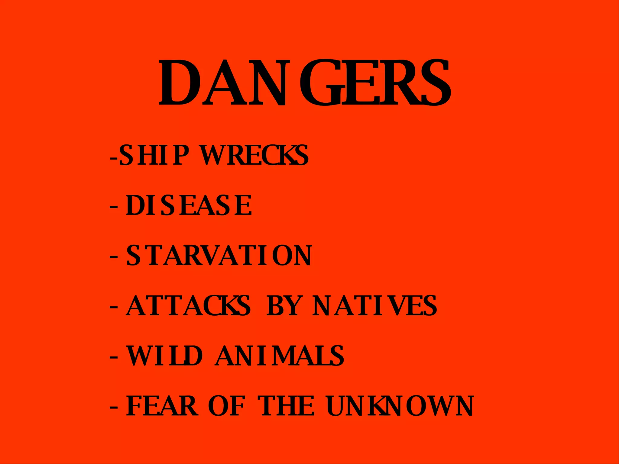 The document discusses the dangers and motivating factors for coming to America, including shipwrecks, disease, attacks by natives, and religious and economic motivations. It mentions several early English settlements including the Lost Colony on Roanoke Island, Jamestown as the first permanent English settlement which faced difficulties, and settlements in Massachusetts, Plymouth, Pennsylvania and Georgia founded by religious groups seeking freedom or debtors from English prisons.
