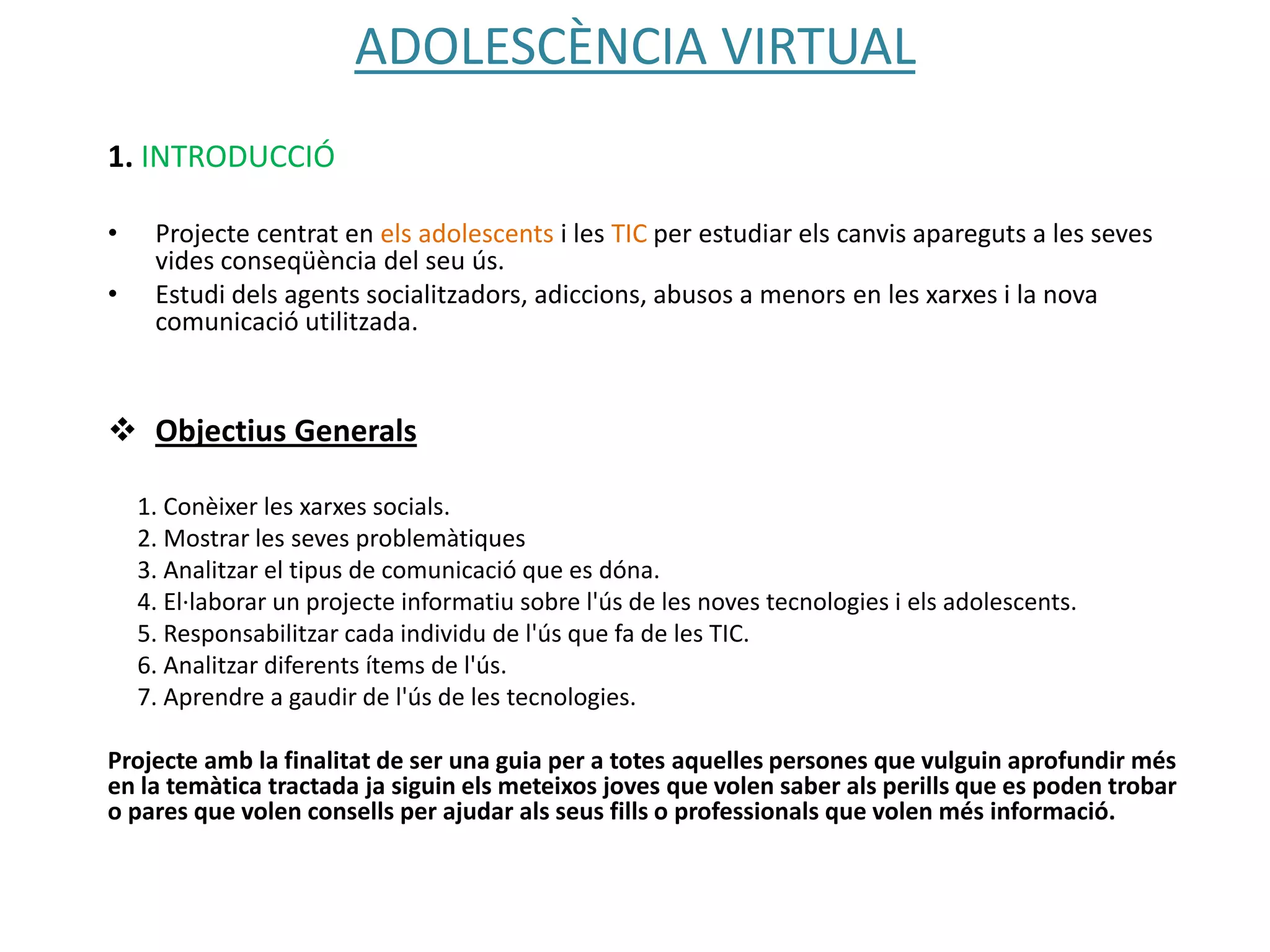 4. El·laborar un projecte informatiu sobre l'ús de les noves tecnologies i els adolescents.