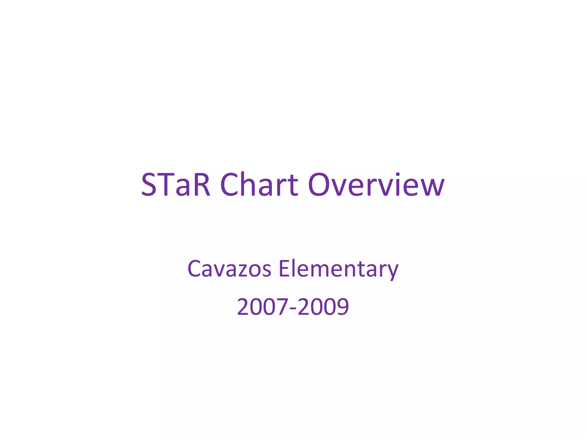 The document provides an overview of the STAR chart results for Cavazos Elementary from 2007 to 2009, detailing aspects such as teaching and learning, educator preparation, and technology infrastructure. It summarizes the progress in technology development and outlines future actions including professional development and tutoring initiatives. Additional information about the STAR chart can be found at the provided URL.
