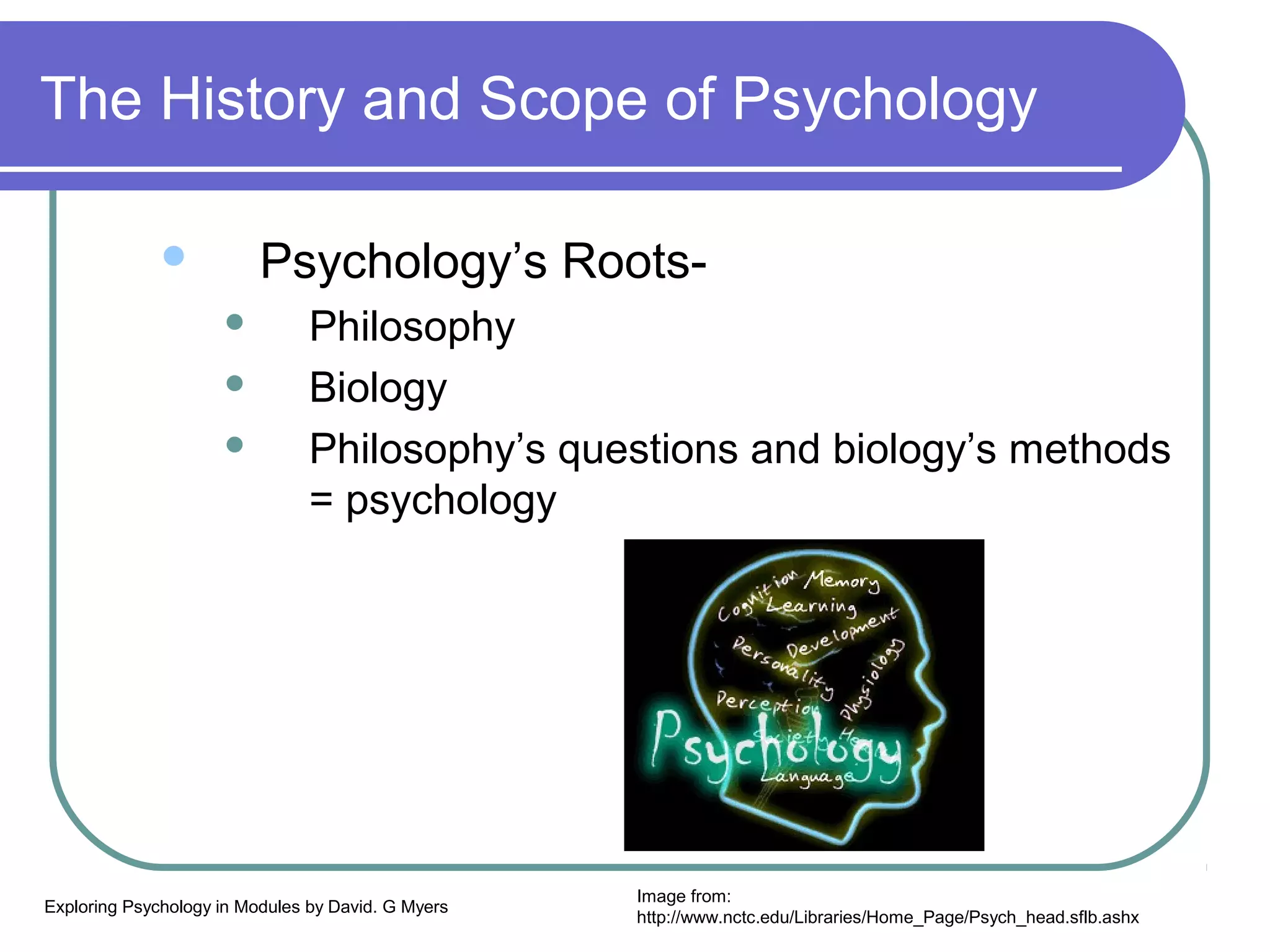 1) Psychology's roots in philosophy and biology and Wilhelm Wundt creating the first psychology lab in 1879.