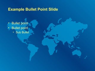 This document provides guidelines and examples for using business presentation templates. It includes examples of slide types like bullet point slides, picture slides, graphs, tables, and multi-column bullet points. The document explains that the templates can be used for personal and business presentations but should not be resold, distributed for download, or claimed as one's own work. Users are encouraged to provide a link back to the website if they display a presentation using the templates online.