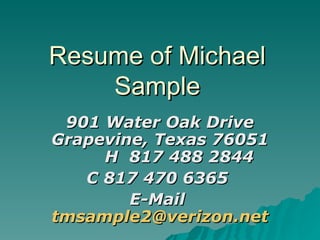Michael Sample has over 30 years of experience in safety management and loss control. He has established comprehensive safety programs that have reduced accident frequencies by up to 46% and insurance costs by 41%. Through conducting training, inspections, and developing safety incentives, he has helped multiple companies achieve an experience modification rate of 0.55.