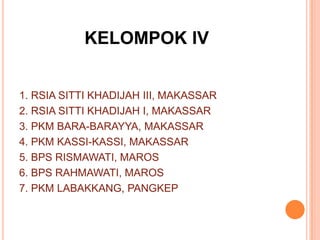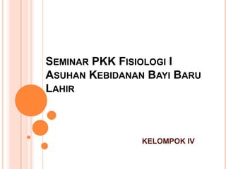 Dokumen ini membahas asuhan kebidanan bagi bayi baru lahir, termasuk definisi, manajemen, dan tujuan dari seminar yang diadakan pada 21 Maret 2012 di RSIA Sitti Khadijah III, Makassar. Tujuannya adalah untuk memberikan pengetahuan kepada mahasiswi tentang teknik perawatan bayi baru lahir fisiologis dan memantau kesehatan bayi pasca kelahiran. Proses mengaji mencakup identifikasi masalah, rencana tindakan, dan evaluasi untuk memastikan kesehatan bayi serta menghindari komplikasi.