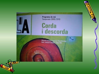 CONCERT: Corda idescorda. S’han utilitzat diversos instruments: Guitarra, contrabaix, guitarra elèctrica, violi, i viola. Els músics baixen les escales i apareixen per diversos llocs de l’escenari per cridar l’atenció dels nens. Utilitzen els instruments per fer, també, diversos sorolls d’animals. Toquen cançons conegudes pels infants, i així ells poden participar. Reprodueixen la música, a travès de diferents situacions conegudes pels petits, com ara el fet de donar-li corda a un nino, o la melodia d’un mòbil.