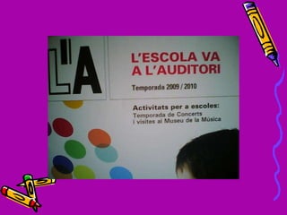 Visitem… L’AUDITORI! IDEESPRINCIPALS MUSEU: Hi ha dues visites diferents per a nens d’infantil, i totes dues tenen unes coses en comú: Tenen un planó del museu per a nens petits, perquè es puguin guiar millor. Idea inicial: Trià d’instruments. La visita pot ser lliure o guiada.