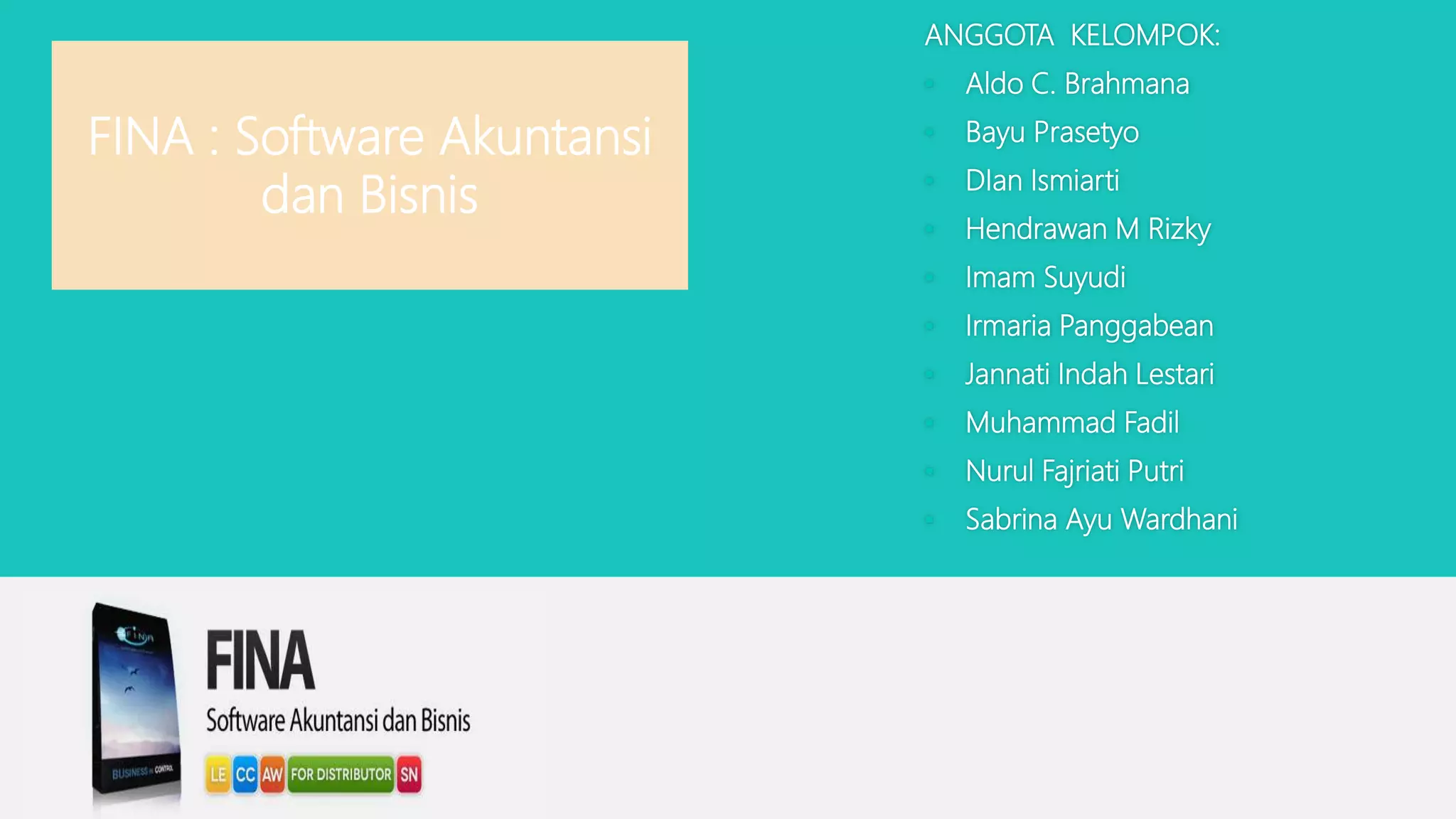 Software akuntansi FINA memiliki beberapa varian produk untuk berbagai jenis bisnis seperti Cost Center, Anywhere, Distro, dan Manufacture. FINA dapat mengolah transaksi secara akurat dan menghasilkan laporan tepat waktu dengan fitur lengkap seperti pembelian, penjualan, persediaan, dan laporan keuangan. Software ini juga memiliki fitur validasi, audit trail, dan pengendalian akses untuk menjaga integritas data.