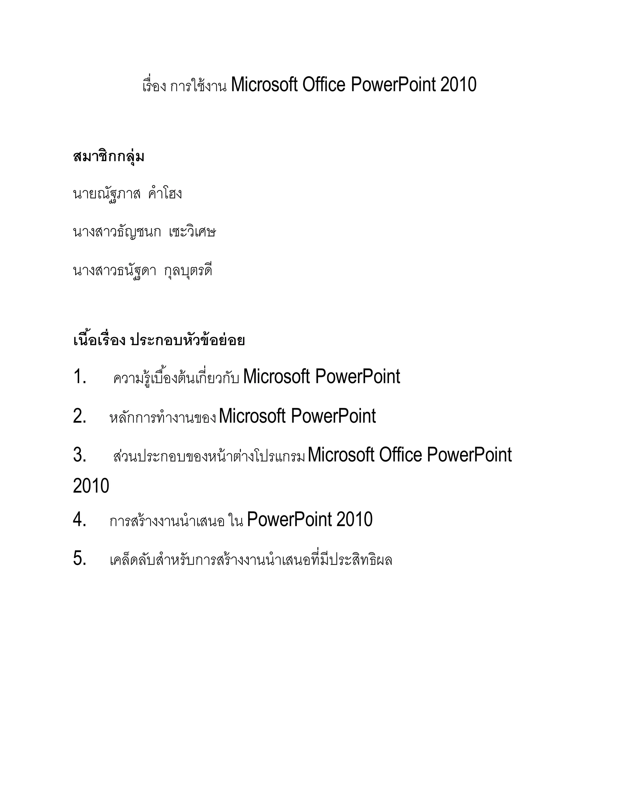 1. ความรู้เบื้องต้นเกี่ยวกับ Microsoft PowerPoint