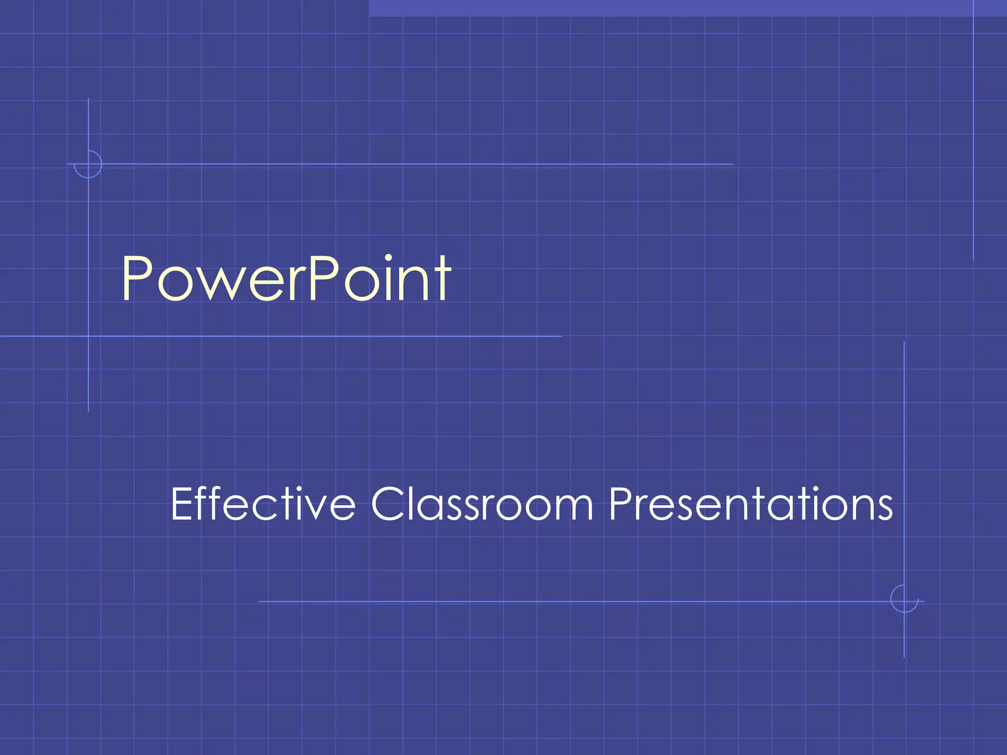 The document provides tips for creating effective PowerPoint presentations for classroom use. It recommends including text, graphics, sound and video to engage different learning styles. Handouts with 1-6 slides per page allow students to focus on learning rather than note-taking. Presenters should consider the audience and topic, use consistent formatting, include only key points per slide, and keep designs simple. Long paragraphs should be avoided, and images and multimedia only used if they effectively communicate ideas.
