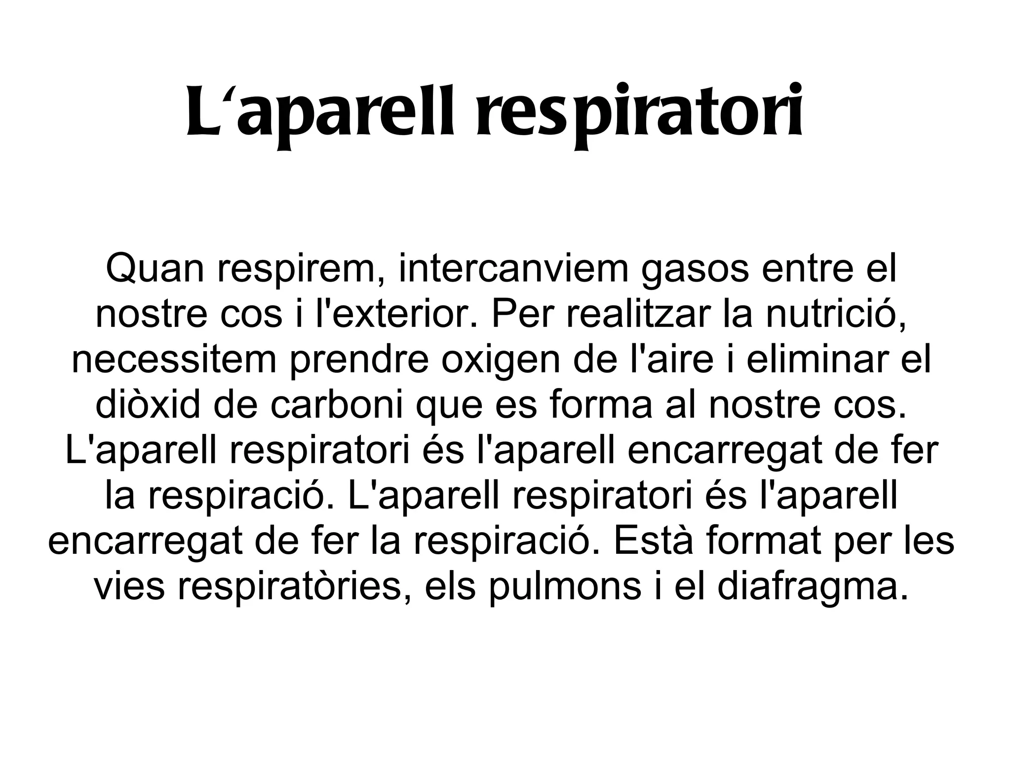 la respiració. L'aparell respiratori és l'aparell