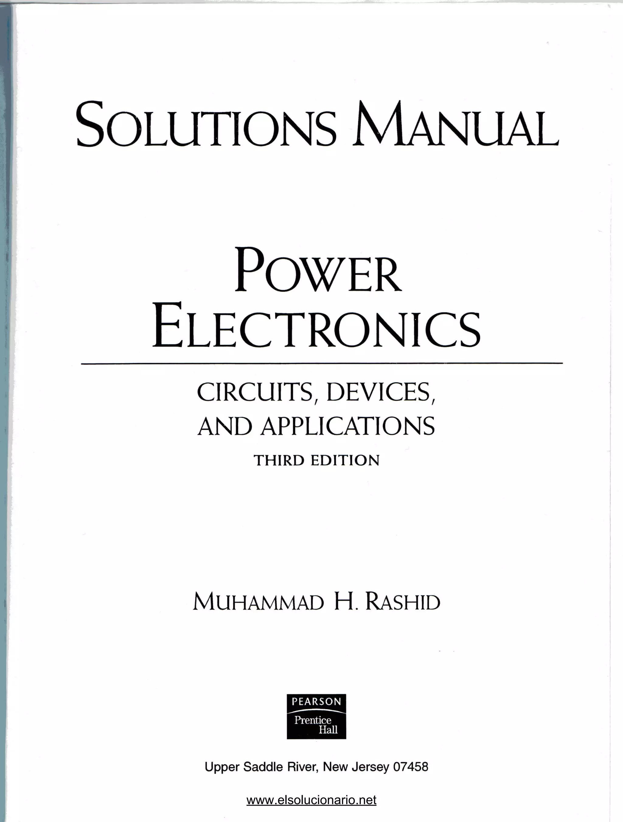 The document is from a solutions manual for a power electronics textbook. It provides step-by-step solutions to example problems from Chapter 2 on power semiconductor diodes and circuits and Chapter 3 on diode rectifiers. The problems cover topics like calculating diode voltage and current characteristics, analyzing diode circuits, designing rectifier circuits, and calculating output voltages and currents for various rectifier configurations.