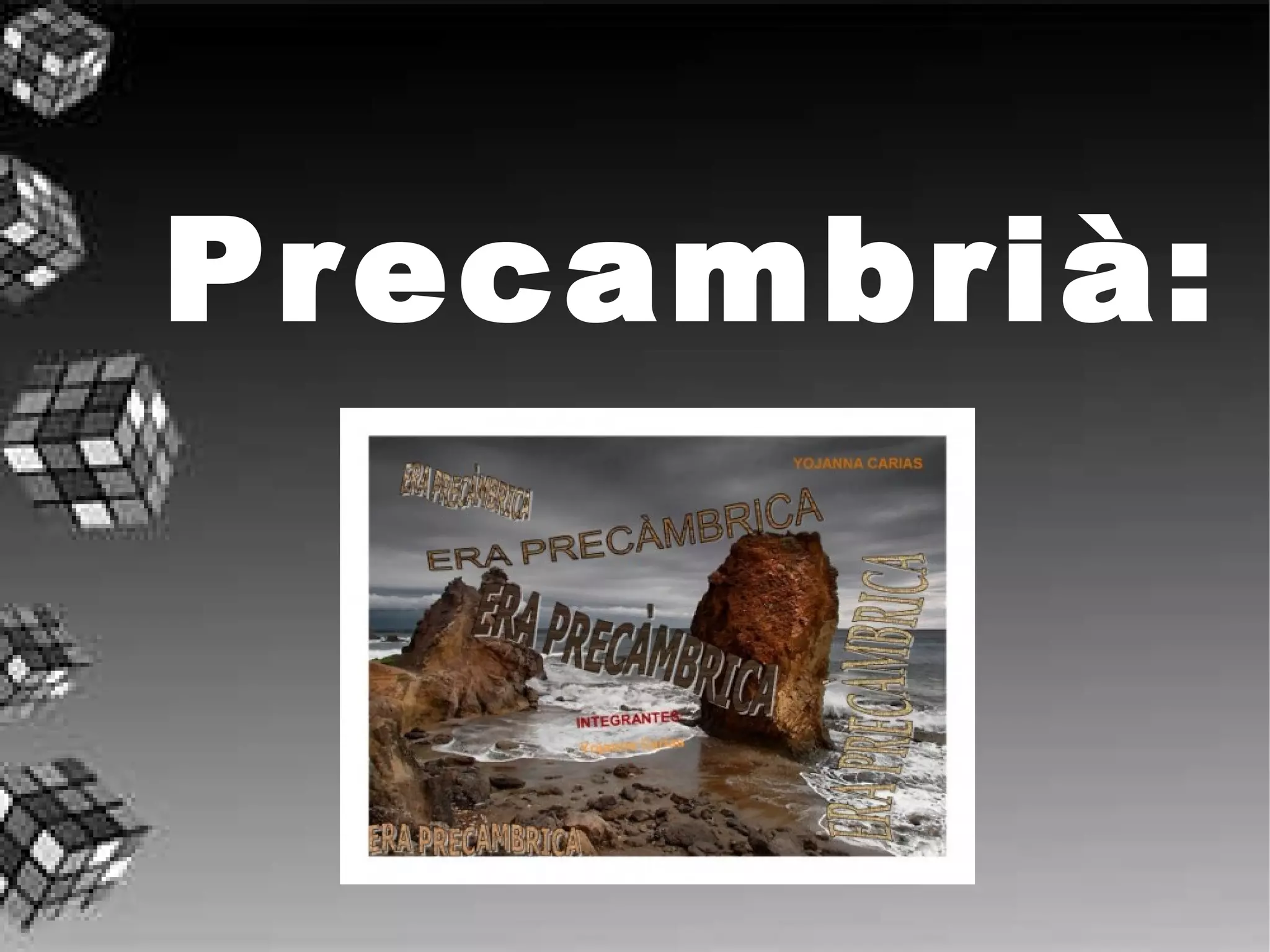 El precambrià, esla més antiga de les divisions de l’escala de temps geològics que comença amb el naixement de la Terra i se entén fins al cambrià, al inici de l’eó fanerozoic, fa uns 570 milions d’anys, quan els organismes multicel·lulars van començar a ser abundants. Les roques més antigues conegudes tenen una edat de aproximadament 4.000 milions d’ anys. Precambrià