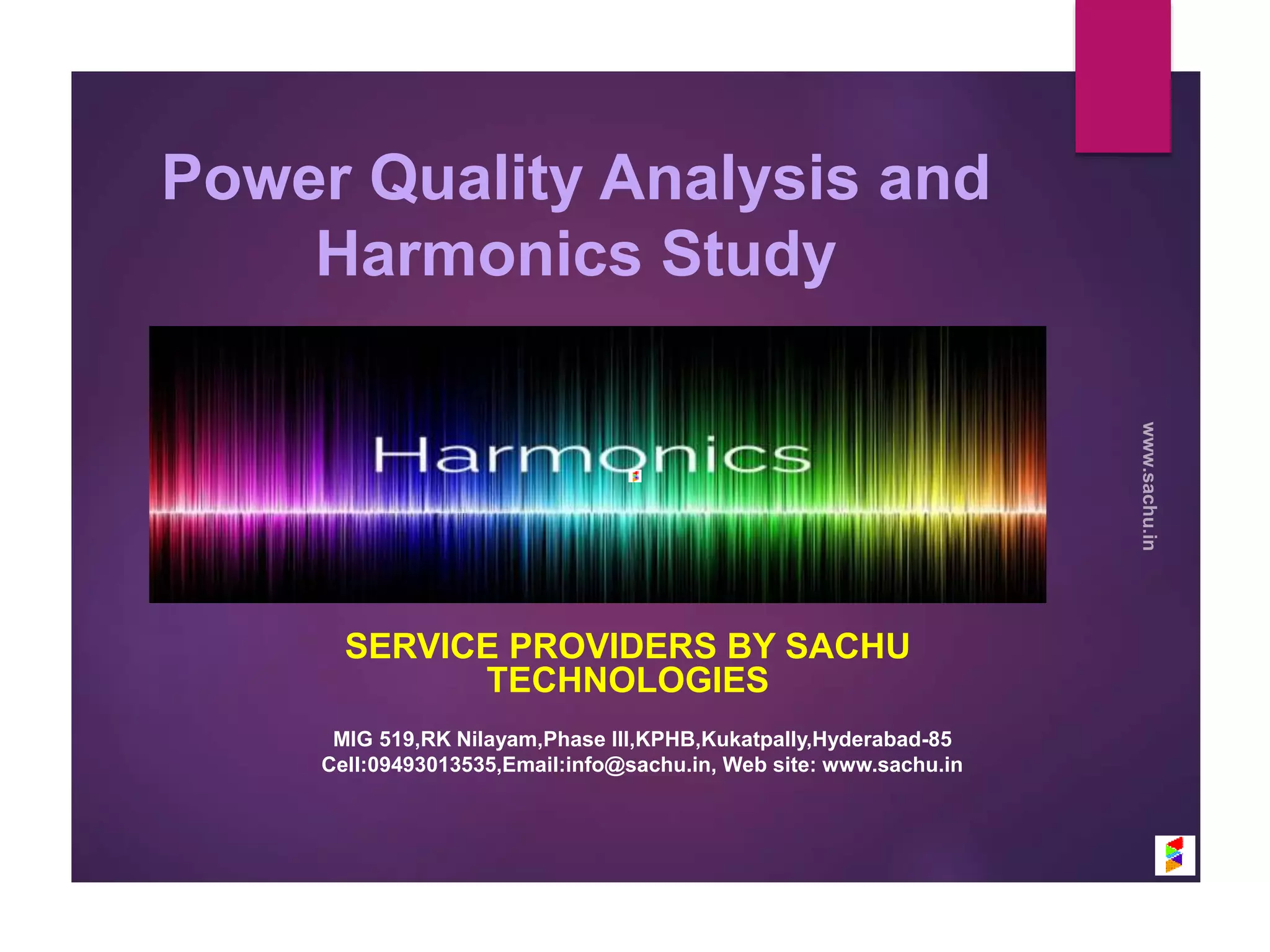 Sachu Technologies provides comprehensive power quality analysis and harmonics monitoring services across India, utilizing advanced circuit analysis tools to ensure efficient operation of electrical systems. Their offerings include a range of audits, thermography surveys, and reactive power compensation solutions to mitigate issues like distortion and voltage irregularities. The company emphasizes the importance of power quality to prevent equipment failures and reduce operational costs for critical facilities such as hospitals and data centers.
