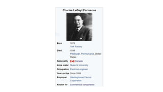 1. The document discusses symmetrical components, which allow representation of unbalanced three-phase quantities as the sum of three balanced components.