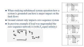 3. Symmetrical components are useful for simplifying analysis of unbalanced conditions like single line-to-ground faults in power systems. Sequence impedances can be used to model devices and transmission lines.