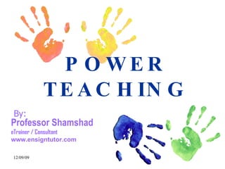 The document provides information about power teaching techniques. It discusses establishing classroom procedures and using attention grabbers like "Class-Yes" to focus students. Specific techniques are described, such as "Teach-Okay" which involves briefly explaining concepts and having students rephrase and teach their peers. The document emphasizes rewarding positive behavior and correcting errors in a gentle way to motivate students.