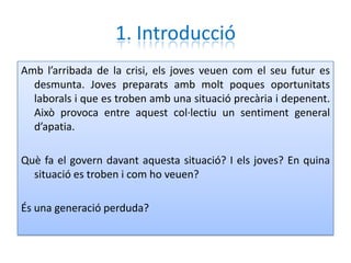 • Conèixer l'afectació de la crisi en els joves.