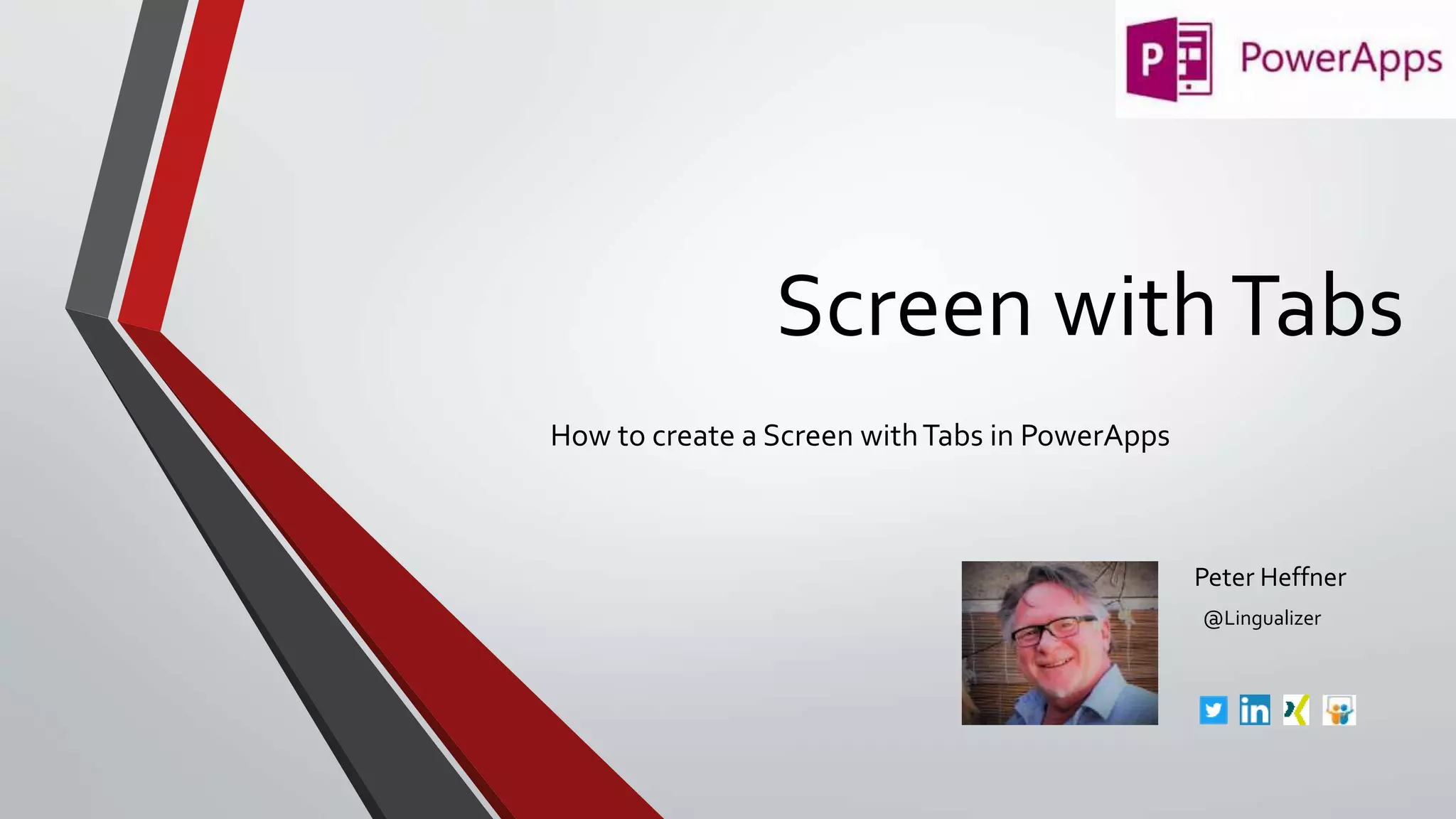 This document provides instructions for creating a screen with tabs in PowerApps. It describes adding a scrollable screen, three sections to represent each tab, setting the fill color of each section/tab, defining a collection and variable to track the selected tab, adding a horizontal gallery to display the tabs, and setting the visible property of each section based on the selected tab variable.
