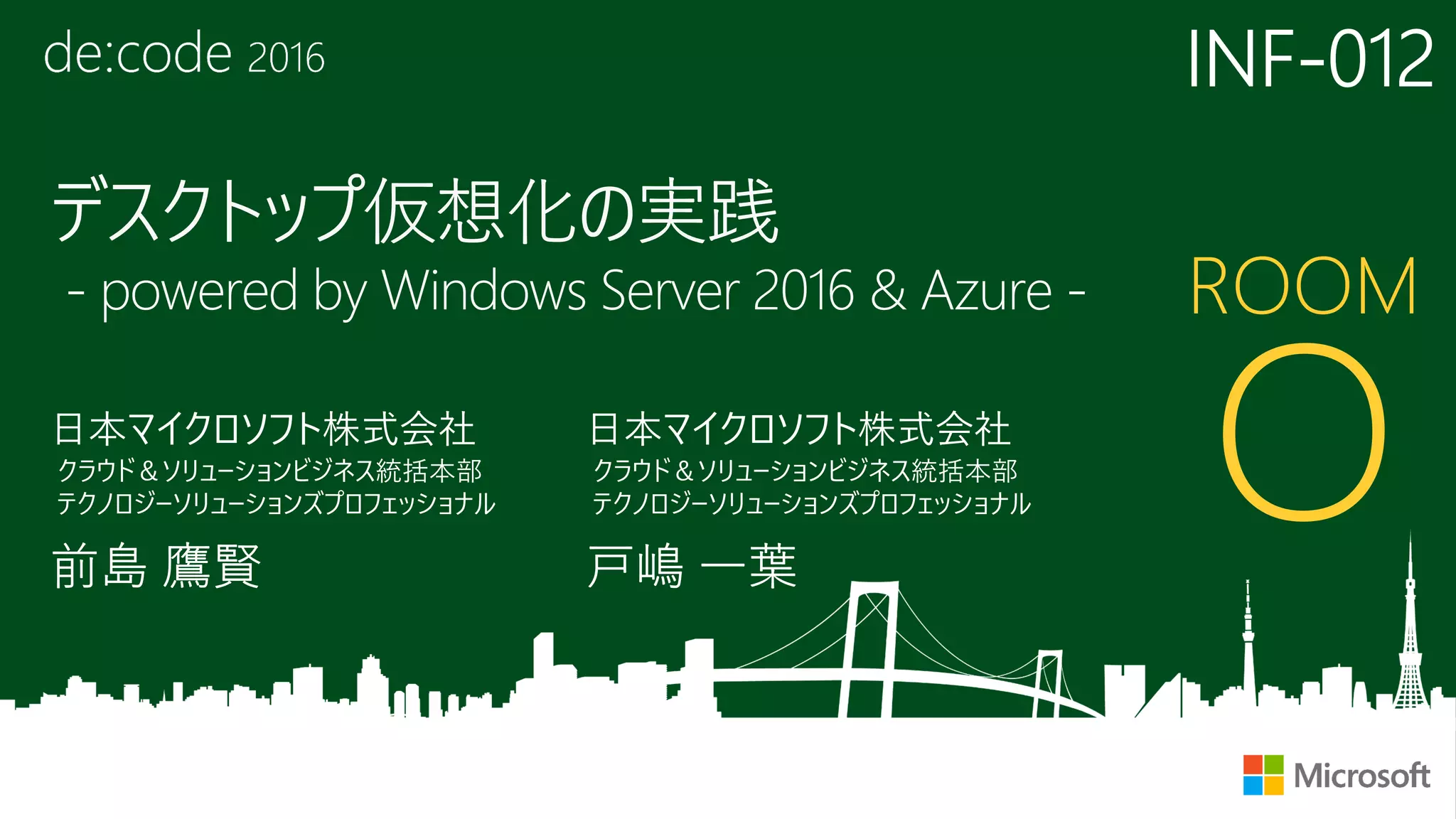 [セッションタイトル] デスクトップ仮想化の実践 - powered by Windows Server 2016 & Azure -
