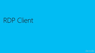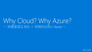2016年5月に開催された Microsoft de:code 2016 での、RDS (Remote Desktop Services) on Microsoft Azure に関するセッションスライドです。