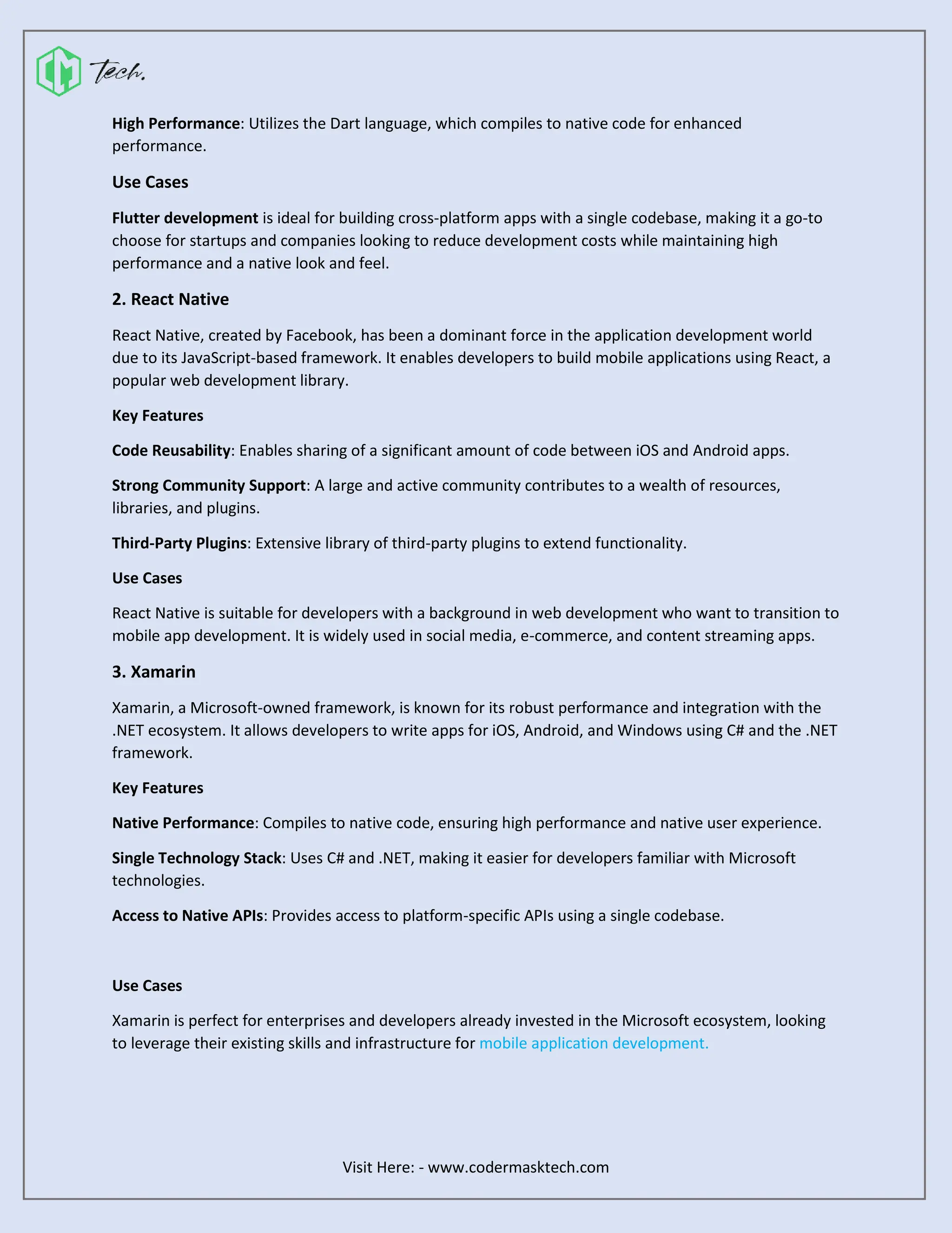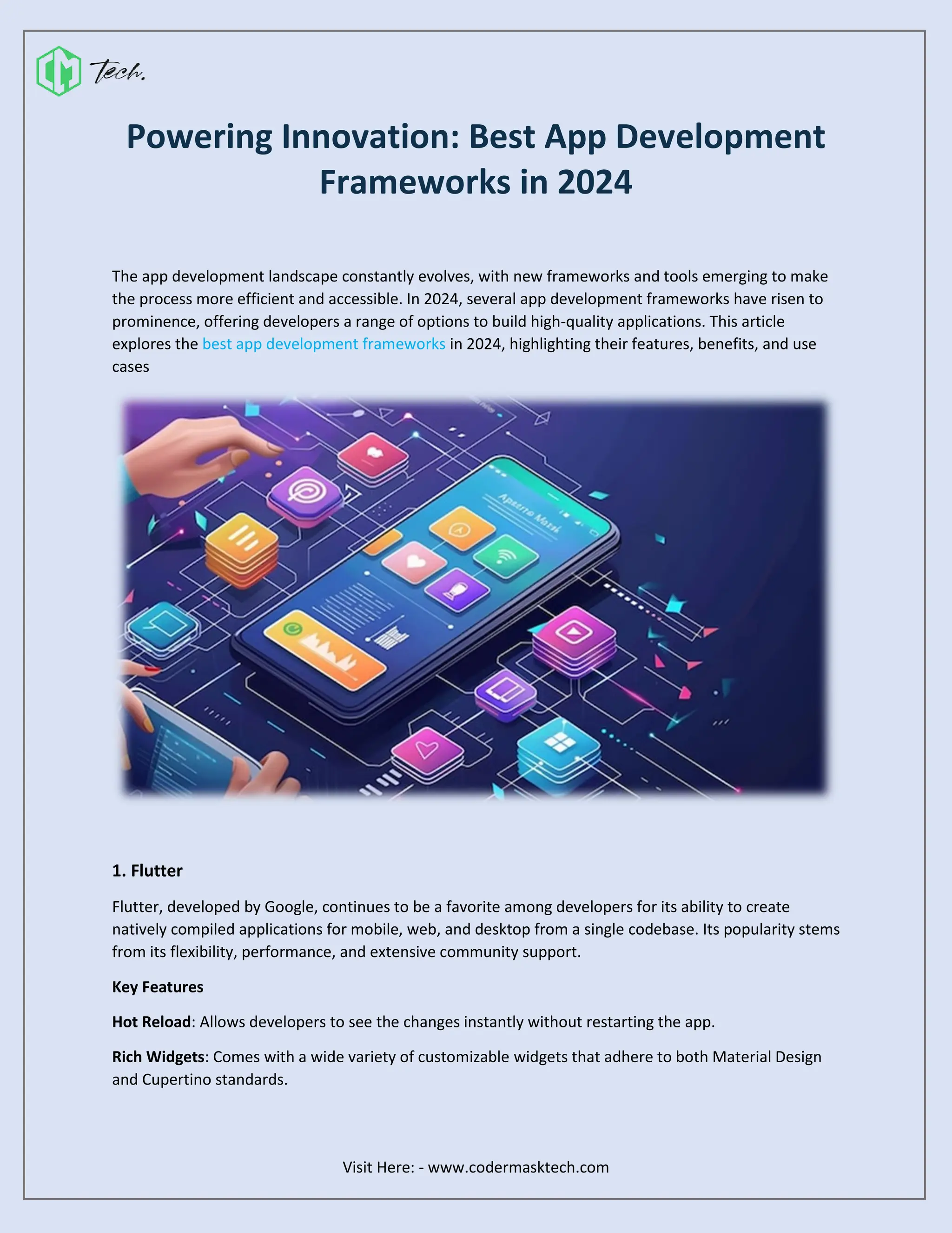 In 2024, several app development frameworks have emerged as top choices for developers, including Flutter, React Native, Xamarin, SwiftUI, Kotlin Multiplatform, Ionic, and NativeScript, each offering unique features and use cases. These frameworks cater to various needs such as high performance, cross-platform development, and ease of use. The selection of a framework should align with project requirements, team skills, and target platforms.