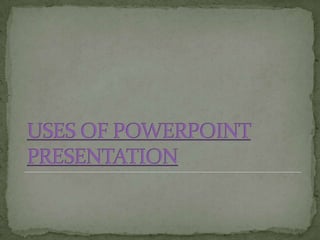 PowerPoint presentations can be an effective presentation tool when used properly. They allow inclusion of text, graphics, sound and video on individual slides that can be arranged and displayed to an audience. When designed well according to best practices, PowerPoint can make learning easier and more engaging for students while also making presentations more concise and visually focused for business purposes. However, overreliance on PowerPoint features and simply reading slides verbatim can have negative effects and bore an audience. Proper analysis of needs, audience and environment, along with creation and evaluation according to principles of visual design, can help ensure PowerPoint enhances rather than detracts from a presenter's message.