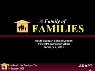 This PowerPoint presentation discusses God's purposes for families and how Christians can reflect God's love in their families. It encourages fulfilling God's vision of families providing companionship and community and expressing love through respect, care, and quality time. The presentation offers application questions to help attendees implement these principles, suggesting spending more meaningful time with family and treating each other with love.