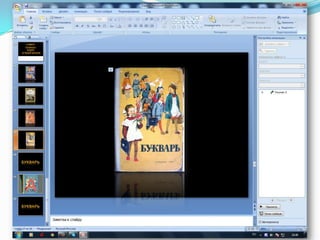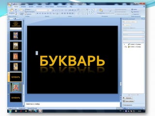 Документ представляет собой инструкцию по созданию презентации в PowerPoint, включая создание слайдов, вставку звука и изображений, а также настройку анимации. Пользователь может выбрать различные источники звука, такие как файл, организатор клипов, компакт-диск или записать звук самостоятельно. Включены указания по работе с интерфейсом и настройкам анимации для элементов на слайде.