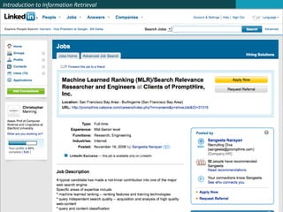 This document discusses using machine learning techniques for learning to rank documents in information retrieval and web search applications. Specifically, it covers: