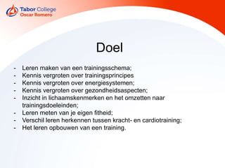 - Leren makenvan een trainingsschema;
