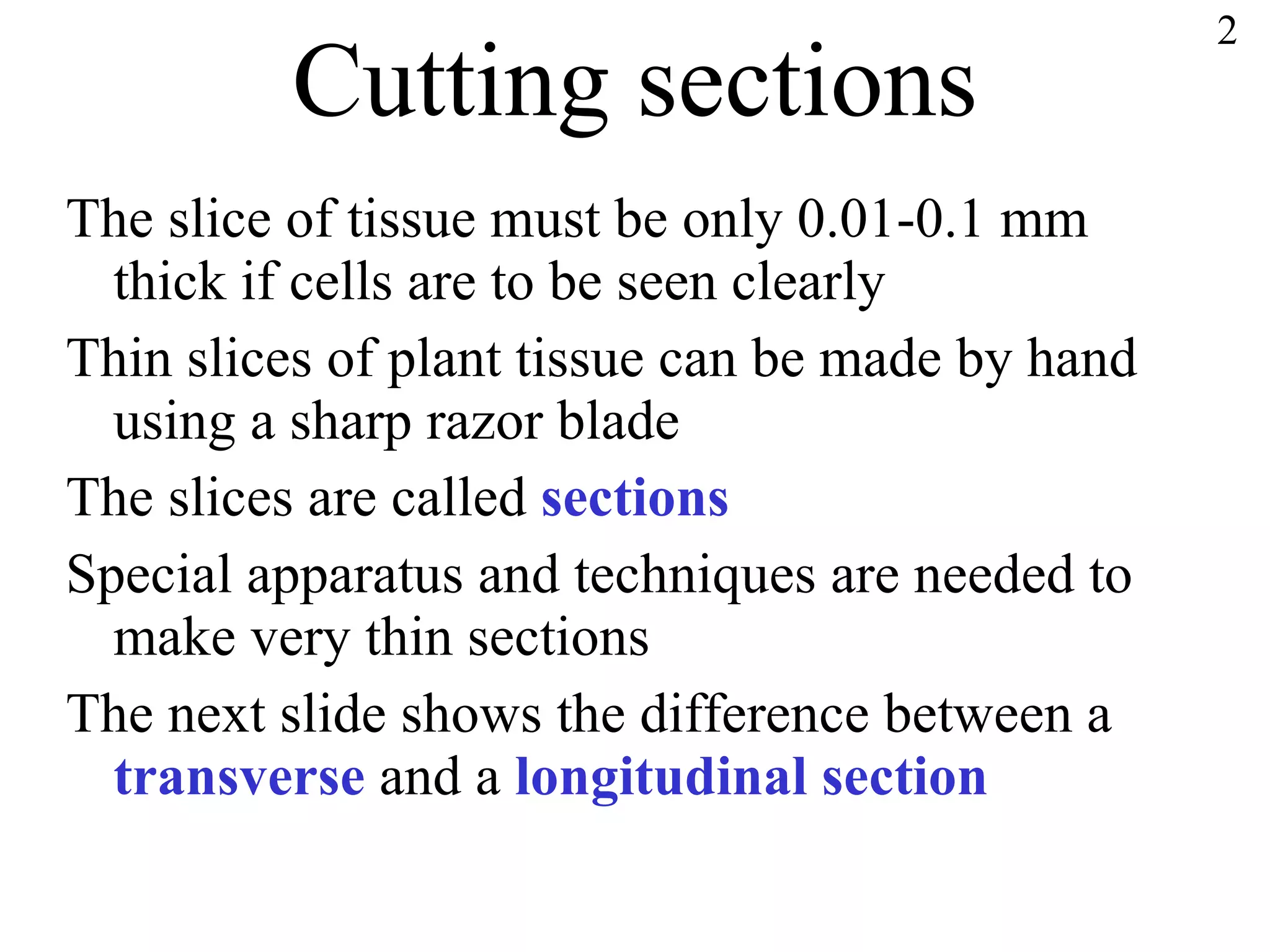 The document discusses cells and tissues. It provides information on plant and animal cells, including their main components like the cytoplasm, nucleus, cell membrane, cell wall, vacuole, and chloroplasts. Plant cells differ from animal cells in having a cell wall and vacuole. The document also discusses how cells are organized into tissues and organs.