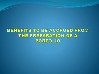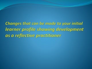 The document discusses reflective practice as the ability to reflect on one's actions to engage in continuous learning. It involves critically examining practice and theories through a reflective and reflexive lens. The portfolio reflects on the student's experiences in a course to develop as a self-empowered, lifelong learner and reflective practitioner.