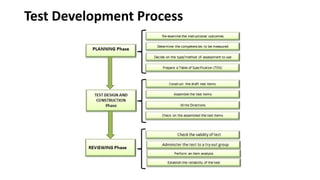 This is where test items are designed and constructed following the