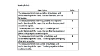 (5pts.), quality of writing (3 pts.), and grammar usage and mechanics (2