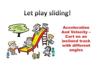 The document describes an experiment to investigate how the acceleration of an object moving down an inclined track is affected by the angle of the track.