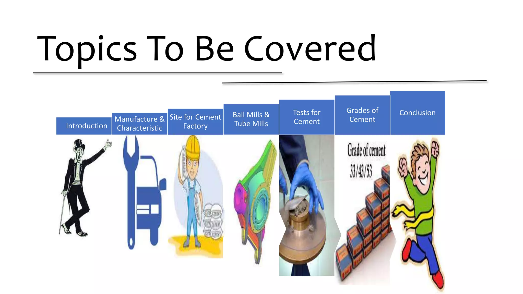 Cement is a mixture of calcareous, siliceous, and argillaceous substances that is used as a binding agent in construction. It is produced through a process involving mixing raw materials, burning in a rotary kiln, and grinding the clinker produced. The manufacturing process can be either dry or wet. Key tests are conducted on cement to check properties like strength, color, presence of lumps, and solubility in water. There are various types of cement suited for different applications.