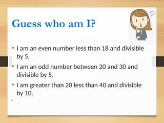 The document focuses on understanding the concept of factors, providing tasks and examples related to identifying factors of various numbers, including real-life applications such as grouping players and items. It emphasizes finding common factors and includes interactive activities like drawing Venn diagrams and using physical items for learning. The educational goals are to help students recognize factors, apply them, and enhance mathematical understanding.