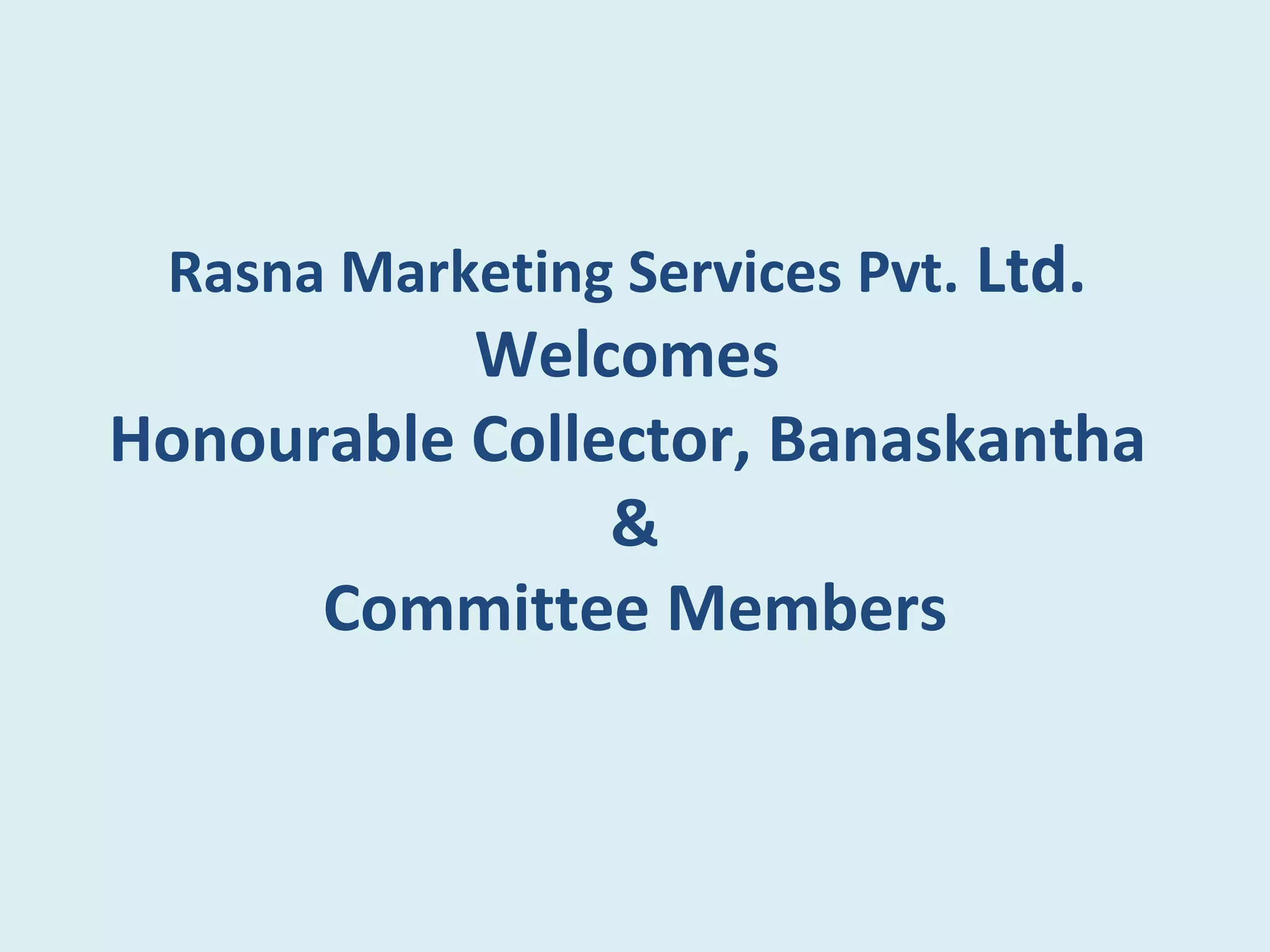 Rasna Marketing Services Pvt. Ltd. is proposing an afforestation and reforestation clean development mechanism (CDM) project on 468 acres of government wasteland in Kherola village, Banaskantha district, Gujarat. The project aims to plant 1.9 lakh native trees using drip irrigation over 20 years to generate carbon credits while improving the environment, creating jobs, and benefiting local communities and farmers. Rasna has signed an MOU with the Gujarat government and is seeking formal land allocation and consultant support to develop the CDM project.