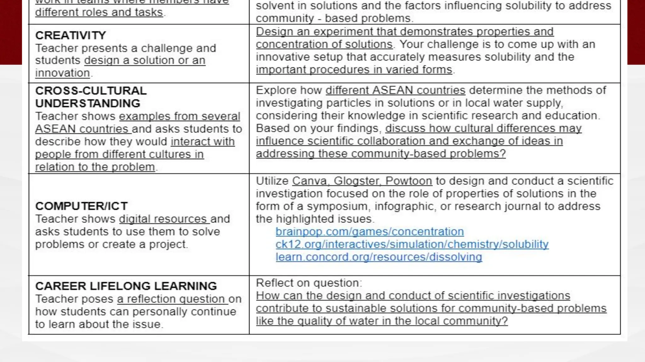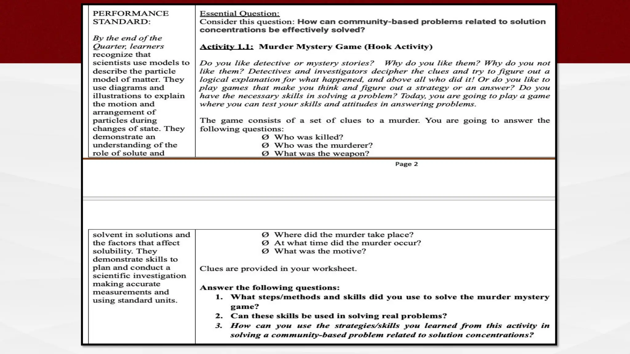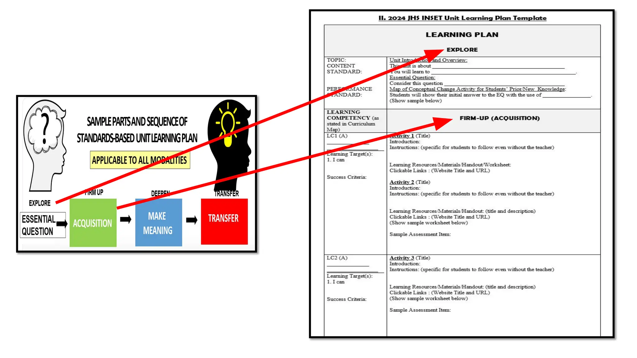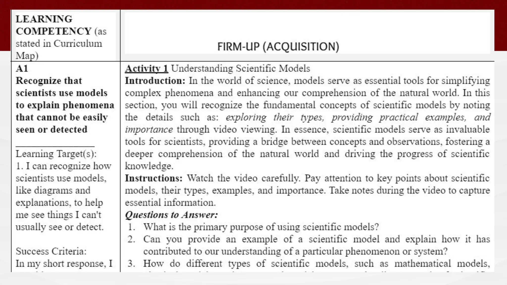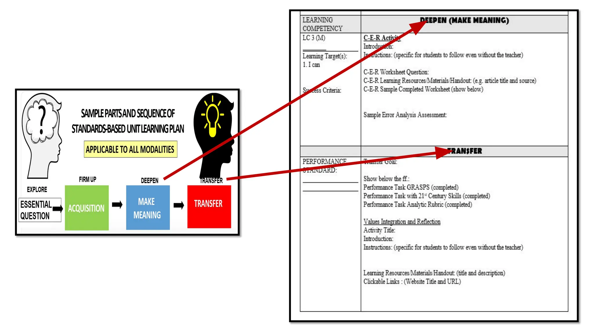 The document outlines the 4Es instructional design framework used in the Matatag curriculum, detailing processes like engaging, exploring, experiencing, and empathizing. It emphasizes the comparison of 4Es with other models such as the 5Es instructional model and discusses the integration of values education and peace education in lessons. Additionally, it provides guidelines for developing learning plans that meet PEAC certification criteria, incorporating essential questions and reflecting on student engagement and learning outcomes.