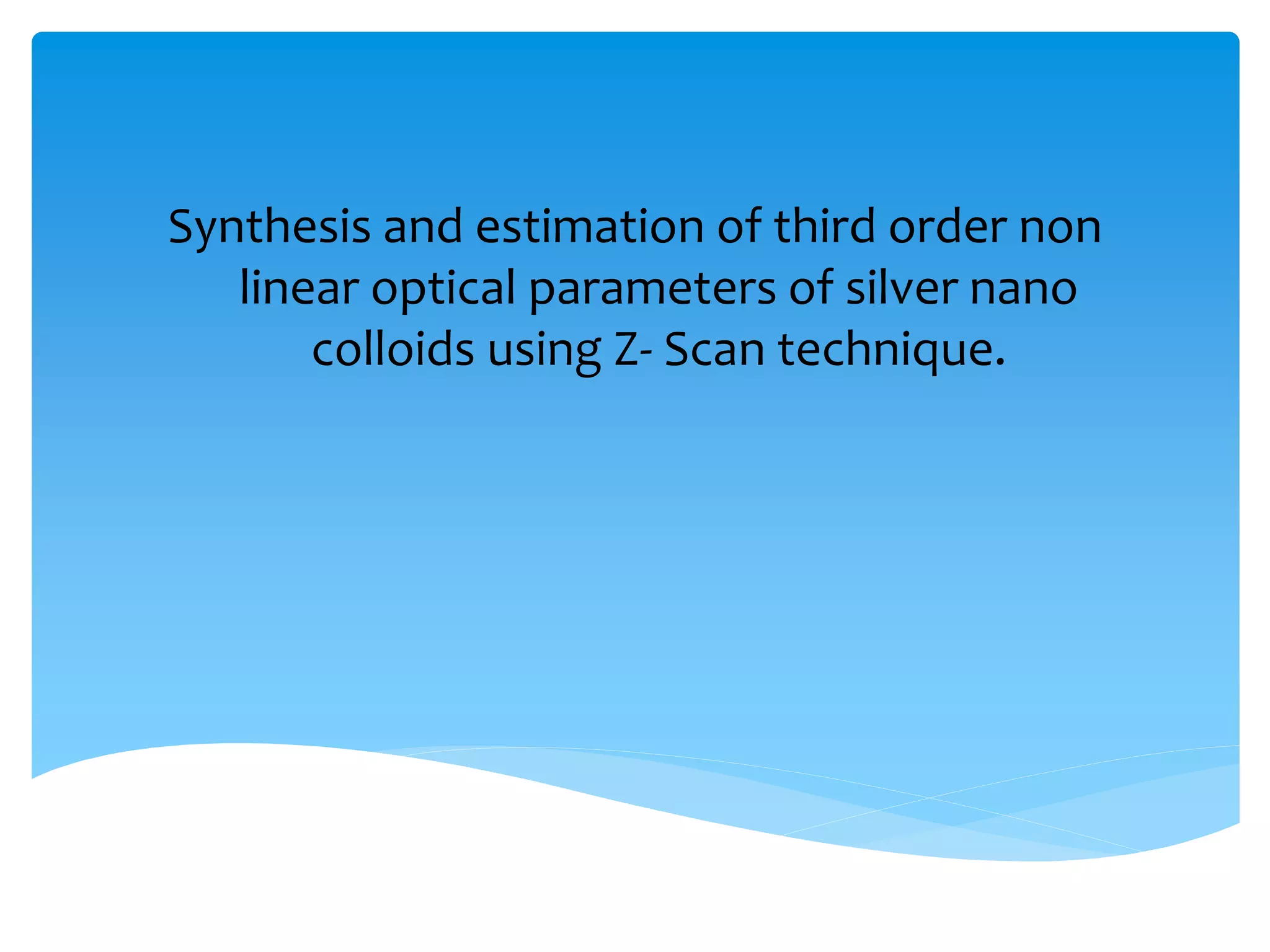 This document discusses using the Z-scan technique to characterize the third-order nonlinear optical properties of silver nano colloids. It introduces nonlinear optics and some of its applications. It then discusses how metal nanoparticles can be prepared using laser ablation or Z-scan techniques and how the Z-scan technique works to measure nonlinear optical properties. The document outlines an experiment using laser ablation to prepare silver nanoparticles and the Z-scan technique to characterize their nonlinear optical response.