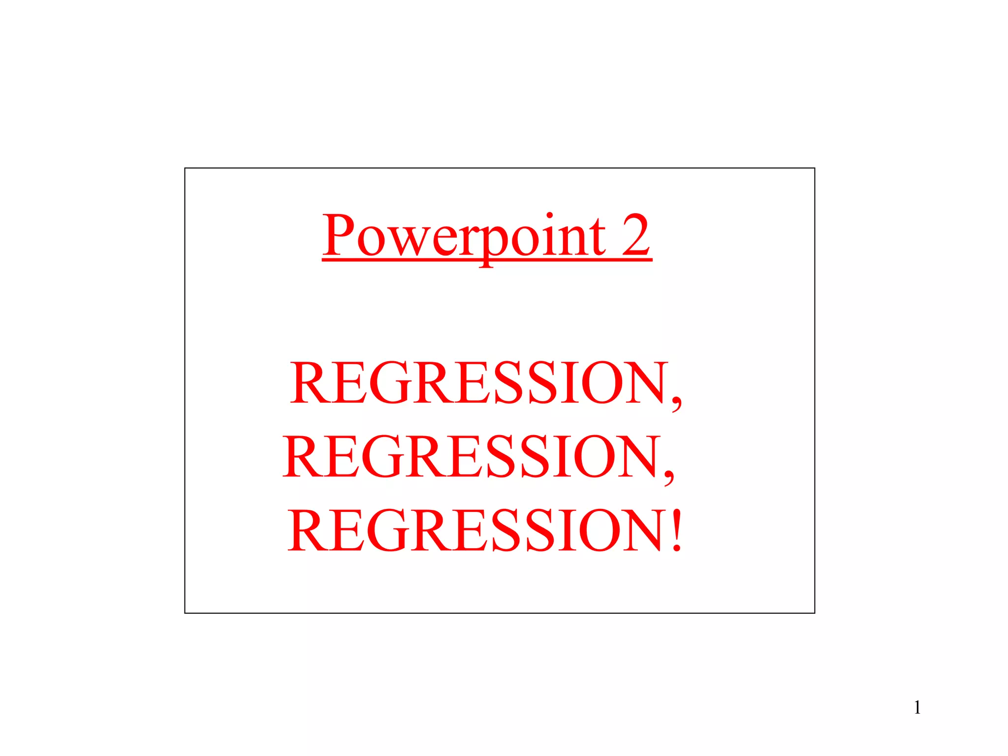 This document discusses regression analysis and correlation. It provides examples of functional and statistical relationships between variables. It shows how to find the least squares regression line that best fits a set of data and minimizes the prediction errors. This line can be used to predict the dependent variable from the independent variable. It also defines key regression concepts like the total sum of squares, sum of squares due to regression, sum of squared errors, coefficient of determination, and correlation coefficient.