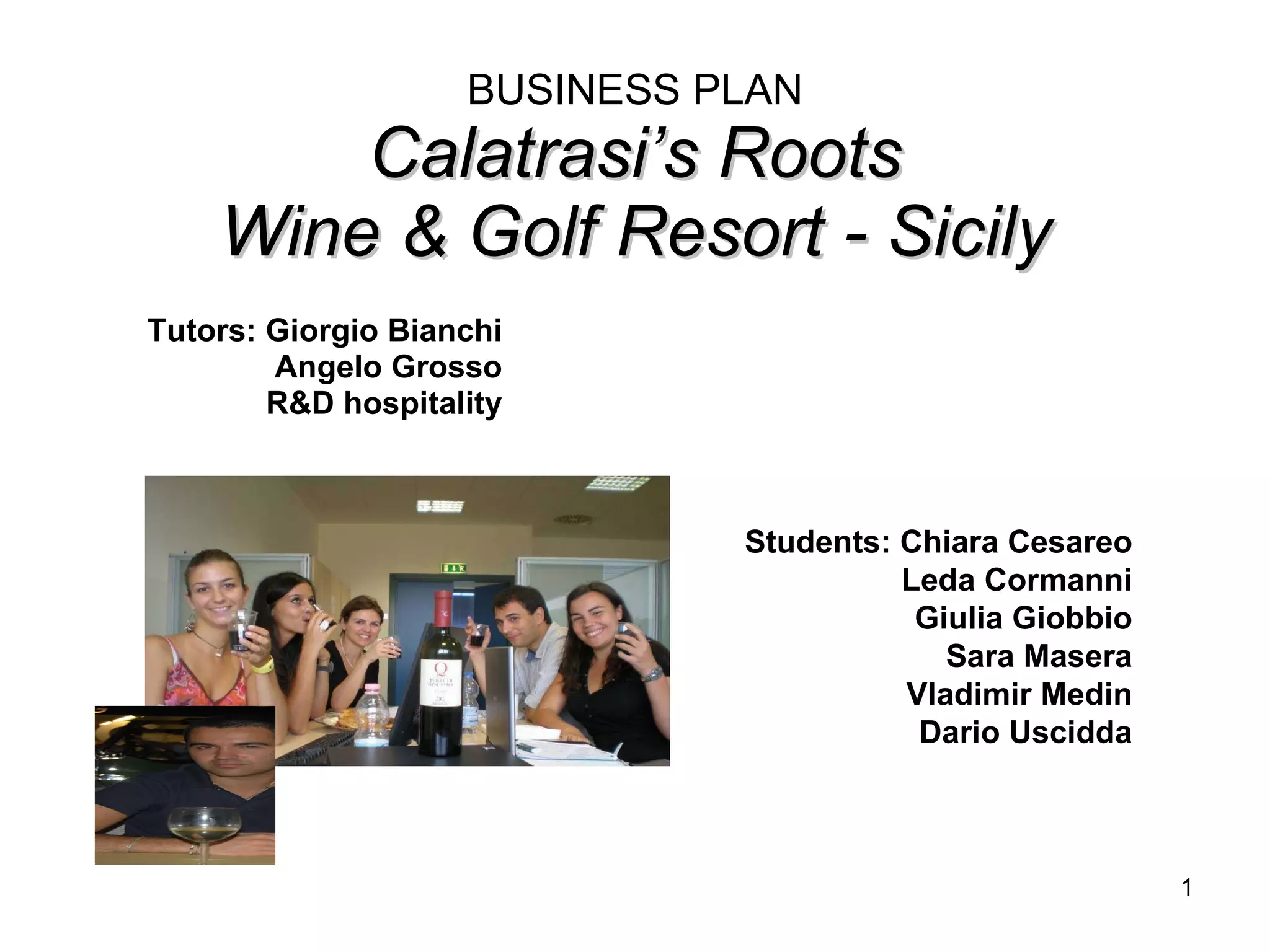 The document outlines a business plan for Calatrasi's Roots Wine & Golf Resort in Valle Fondi, Sicily, which aims to integrate wine tourism with golf tourism through a luxury resort that includes a hotel, restaurant, wellness center, golf course, and residential properties. Key market trends indicate a growing interest in wine and food tourism, supported by a robust demand for high-quality accommodations and experiences. The resort seeks to capitalize on Sicily's rich viticultural heritage and tourism potential by offering unique wine-related and golfing experiences to attract affluent visitors.