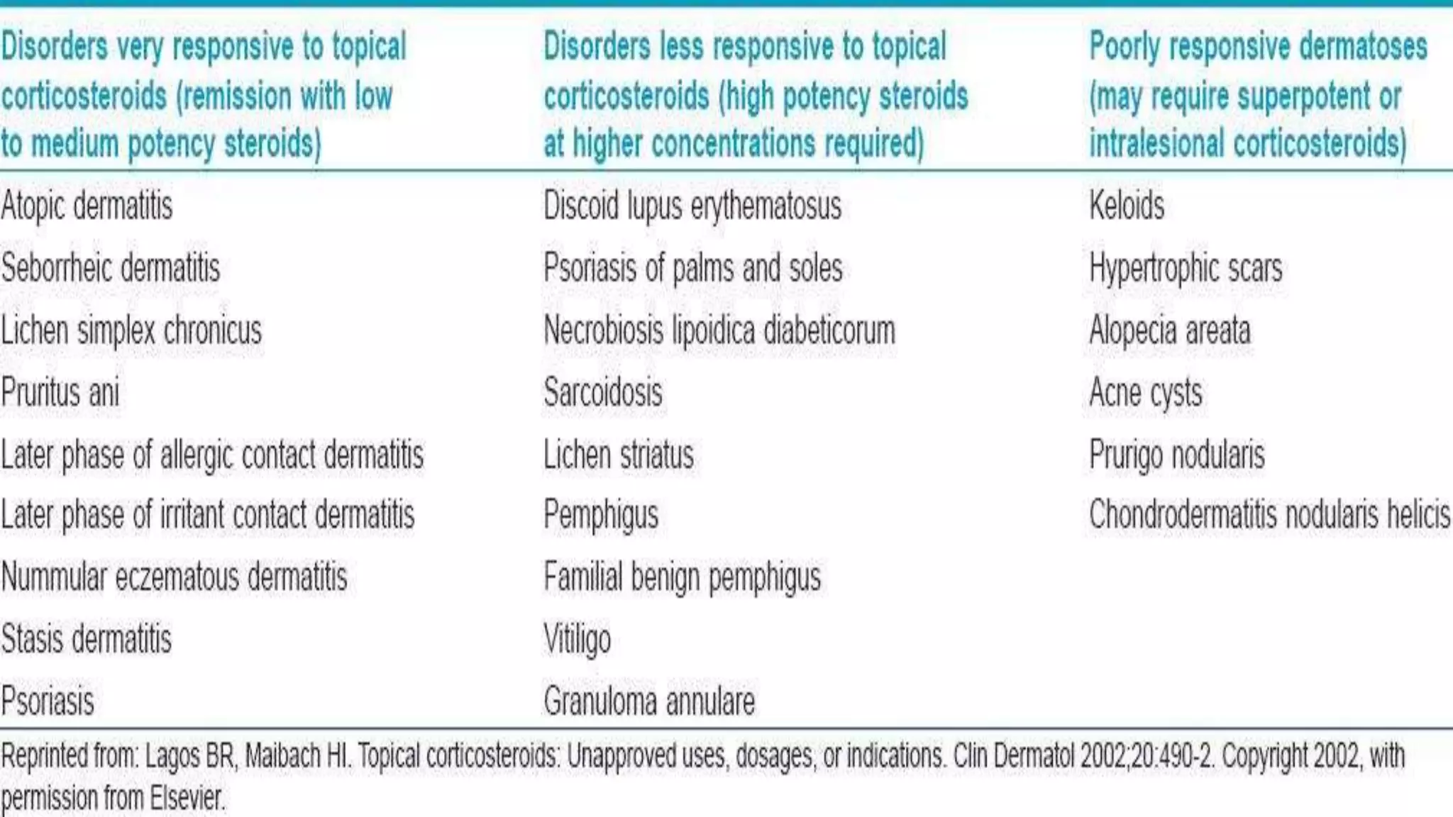 Corticosteroids can be divided into 7 classes based on potency. Topical corticosteroids are used to treat inflammatory skin conditions and their potency depends on the condition. Potential local side effects include atrophy, acneiform reactions, and infections. Systemic side effects may include HPA axis suppression, diabetes, and growth retardation in children. Intralesional steroid injections bypass the skin barrier for better delivery and less atrophy. Conditions treated include alopecia areata, keloids, and resistant psoriasis.