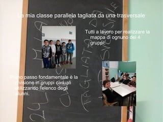 Il documento descrive un progetto di classe in cui gli studenti, divisi in gruppi casuali, creano mind map per affrontare il tema della geometria, focalizzandosi su figure piane e proporzioni. L'obiettivo è migliorare la visualizzazione in geometria attraverso la condivisione delle idee. Alla fine, le mappe vengono combinate per avere una visione globale del lavoro svolto.