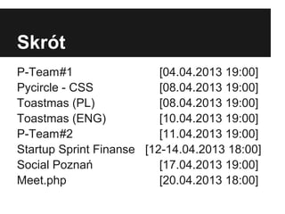 (Opis: http://events.pozoga.eu/startup-sprint/ )