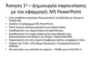 Άςκθςθ 1θ –Δθμιουργία παρουςίαςθσ