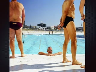 The document provides tips for photographing people, including observing your subject and their environment, having your camera ready, putting subjects at ease by asking questions and listening, looking for flattering angles and backgrounds, noticing body language, identifying lighting sources, getting closer to subjects, waiting for natural moments, and considering whether to get consent or set up shots. It also mentions taking self-portraits and looking for details.