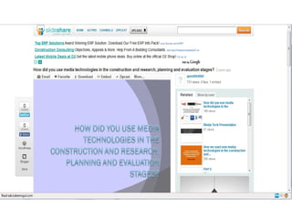 The document discusses the use of various new media technologies in the production of a project. It describes how an iMac and Final Cut Pro were used for planning, research, editing and evaluation. Blogspot was used for collaboration, sharing ideas and documenting the production process. YouTube was used to upload works-in-progress to gather feedback and promote the final trailer. Slideshare enabled the creation of slideshows to present information creatively. Photoshop allowed for detailed photo editing and the creation of magazine and poster designs in specific styles.