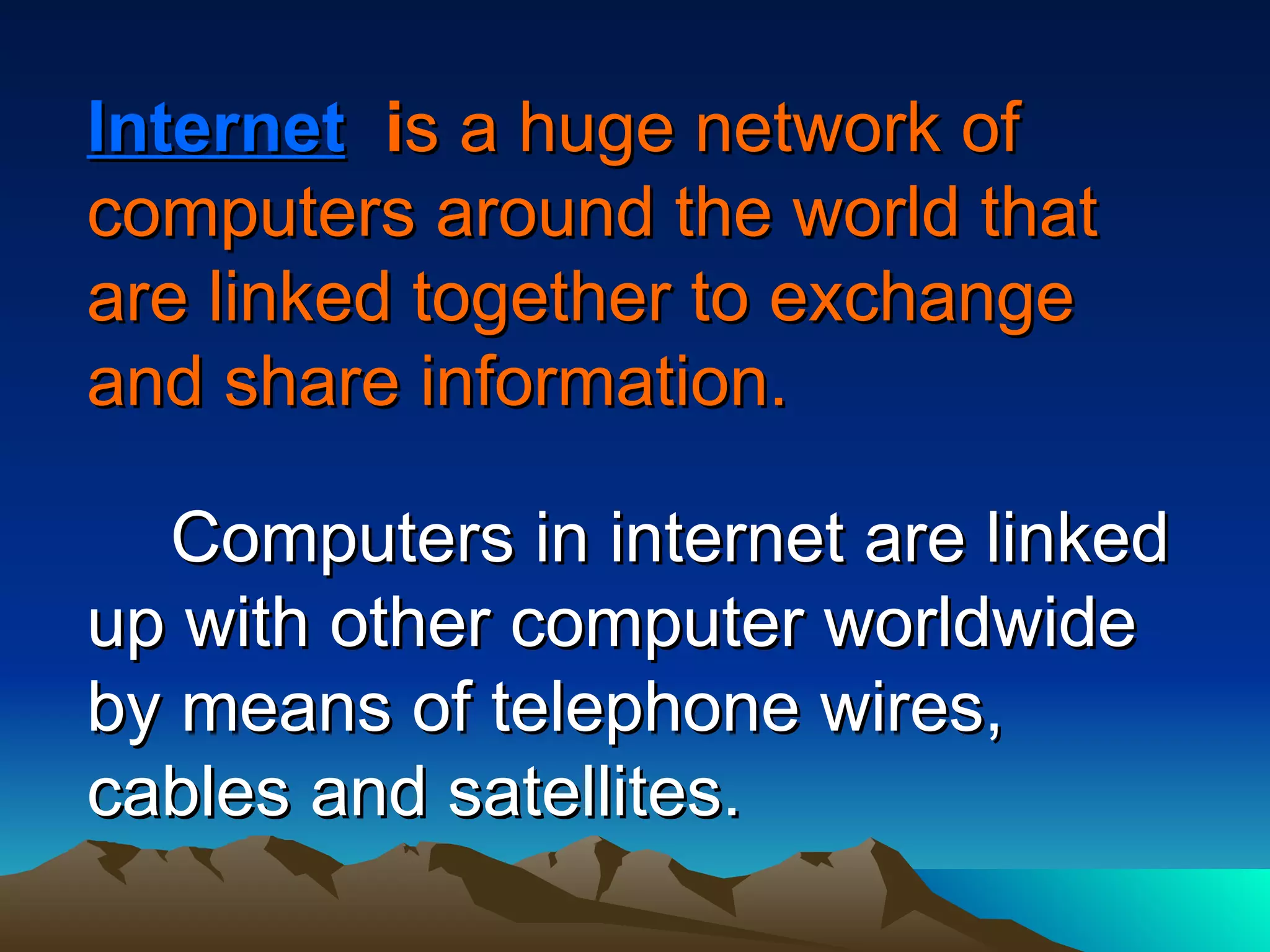 The document provides an overview of the internet and how it can be accessed. It explains that the internet is a huge network of connected computers around the world that share information. It also outlines some of the main components needed to access the internet, such as a computer, modem, telephone line or ISP. Additionally, it discusses how the internet can be helpful for communication, research, business opportunities, and entertainment. However, it also notes some disadvantages like threats to personal information, pornography, spam emails, and computer viruses.