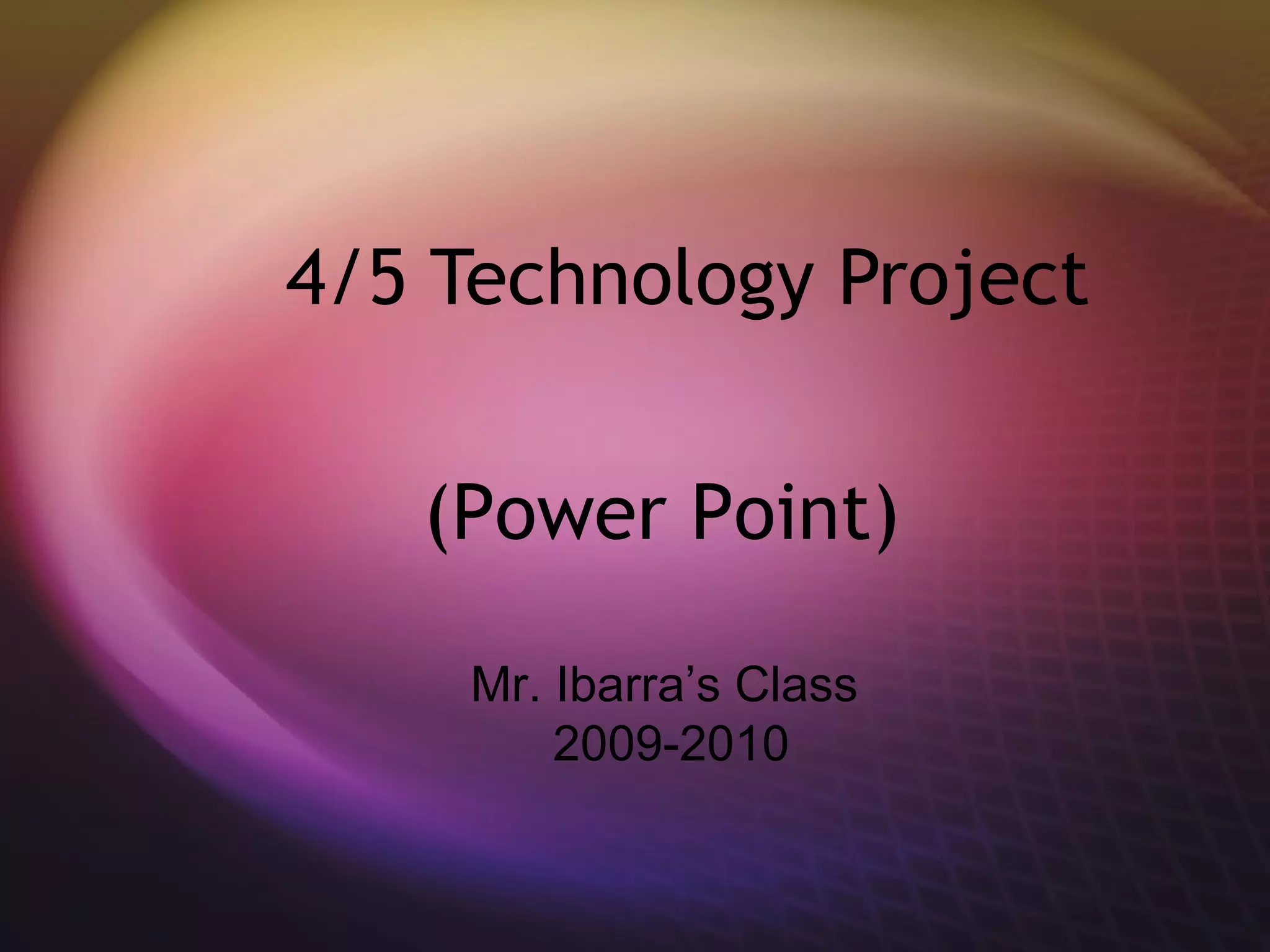 This document outlines a 4th grade technology project to create a PowerPoint presentation by the end of the school year. The goal is for students to complete a standards-based multimedia project and become proficient in PowerPoint. Students will be guided to invent a new product and present instructions/directions. They will learn to analyze text structure, draw inferences from texts, and use proper grammar. The project involves tutorials, practice, and a model slide. Students' slides must meet rubric criteria and can include pictures, sounds, and websites while respecting copyrights. They will connect readings on various inventions to specific California State Standards in their final presentation.