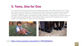 The document highlights five notable story mining campaigns from various brands, showcasing their unique storytelling approaches. TOMS emphasizes its 'one for one' model in support of those in need, Dodge shares the influential story of its founders, Jack Daniels collects humorous bar stories, Volvo showcases Swedish culture with iconic figures, and GoPro features user-generated content in heroic rescue moments. Each campaign utilizes compelling narratives to connect with audiences and promote their brand values.